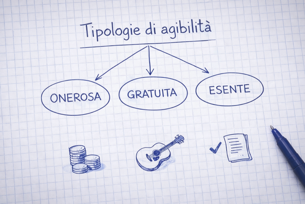 L’agibilità a titolo gratuito riguarda invece le prestazioni senza compenso, spesso legate a eventi di beneficenza. Anche in questo caso, però, resta l’obbligo di copertura assicurativa, e la gratuità deve essere reale e documentata.