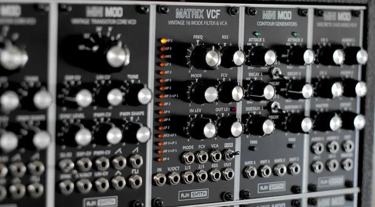 Secondo AJH Synth, la circuiteria si basa sul progetto dell’Oberheim Matrix-12. Il percorso del segnale audio è completamente analogico. Oltre alle 15 modalità di filtro del Matrix-12, tra cui varie caratteristiche passa-basso, passa-alto, passa-banda e notch, il modulo offre una sedicesima modalità: un filtro passa-tutto a 4 poli e un phaser. È possibile passare da una modalità all’altra manualmente o tramite CV, con 16 LED che forniscono un feedback visivo immediato.
