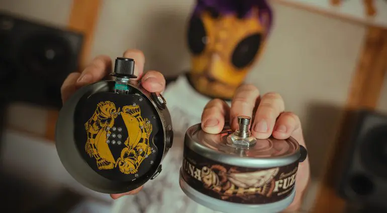 La scatoletta sembra carina. Realizzata a mano con vere scatolette di tonno, contiene i migliori ingredienti per un classico suono fuzz. Ma non preoccupatevi, non c’è mai stato pesce in queste scatolette!