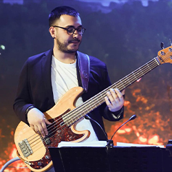 Sono classe ’96 e mi avvicino al basso elettrico all’età di 14 anni, spinto più dall’istinto che da un progetto preciso. Fin dai primi passi resto affascinato dal groove e dal ruolo del basso come collante tra ritmo e armonia, sviluppando una naturale attenzione per la musica d’insieme e per il dialogo tra i musicisti. Con il tempo questa passione si amplia, portandomi ad esplorare linguaggi e generi diversi e a vivere la musica come una forma di espressione e comunicazione.