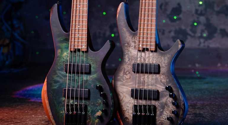 Le radici affondano nella popolare serie Artisan, di cui è stato adottato il design del corpo e del manico. Le sellette del ponte individuali e le meccaniche integrate completano la struttura. Certo, devo abituarmi un po’ al look. Ma dato che ora mi piacciono persino i modelli Ibanez EHB, sospetto che in questo caso il periodo di convincimento sia piuttosto breve. Il manico a 7 pezzi è un’elaborata costruzione in acero roasted, noce, amarath e acero.