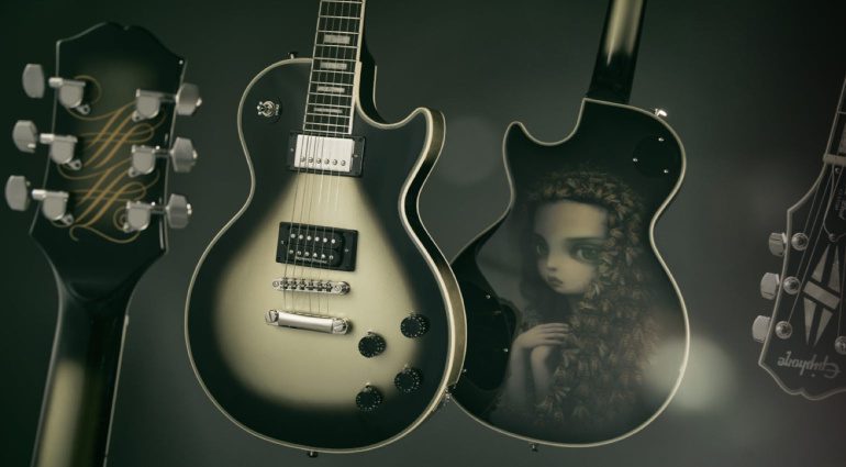 Questa nuova Epiphone Adam Jones Silverburst Les Paul Custom inaugura la nuova gamma di chitarre signature più accessibili del chitarrista dei Tool. La Custom Art Collection prevede sette versioni della chitarra, ognuna con un’opera d’arte diversa sul retro della chitarra.