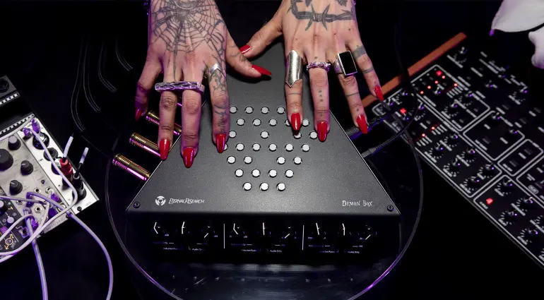 “I nostri strumenti sono per le persone che cercano di sperimentare cose nuove”, afferma l’ingegnere Alexandra Fierra. “Il Demon Box è una tavolozza aperta e non volevo che le mie decisioni di progettazione limitassero la visione delle persone. Volevo che la complessità e il rumore fossero ben visibili, in modo che potessero sperimentare questi fenomeni e rendersi conto che il rumore può essere una cosa positiva. Il caos è la musica, o il seme di tutta la nuova musica”.