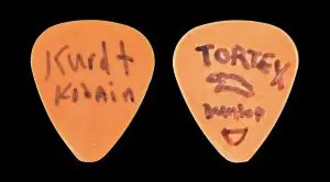 Il plettro autografato da Kurt Cobain è stato venduto per 14.000 dollari e potrebbe essere il plettro per chitarra più costoso mai venduto.