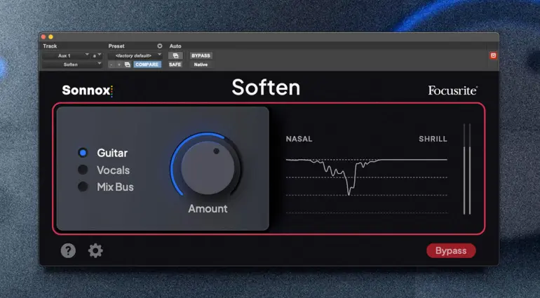 Focusrite x Sonnox Soften è un plugin di riduzione delle risonanze per voci, chitarre e mixbus, gratuito per gli utenti Focusrite e Novation.