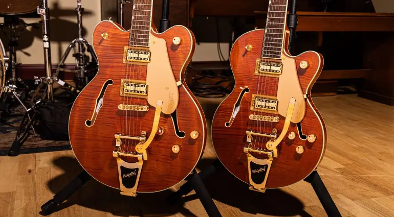 L’hardware principale comprende pickup USA Full’Tron, Bigsby B70 con vibrato, un ponte Anchored Adjusto-Matic, un capotasto Graph Tech NuBone e meccaniche autobloccanti.