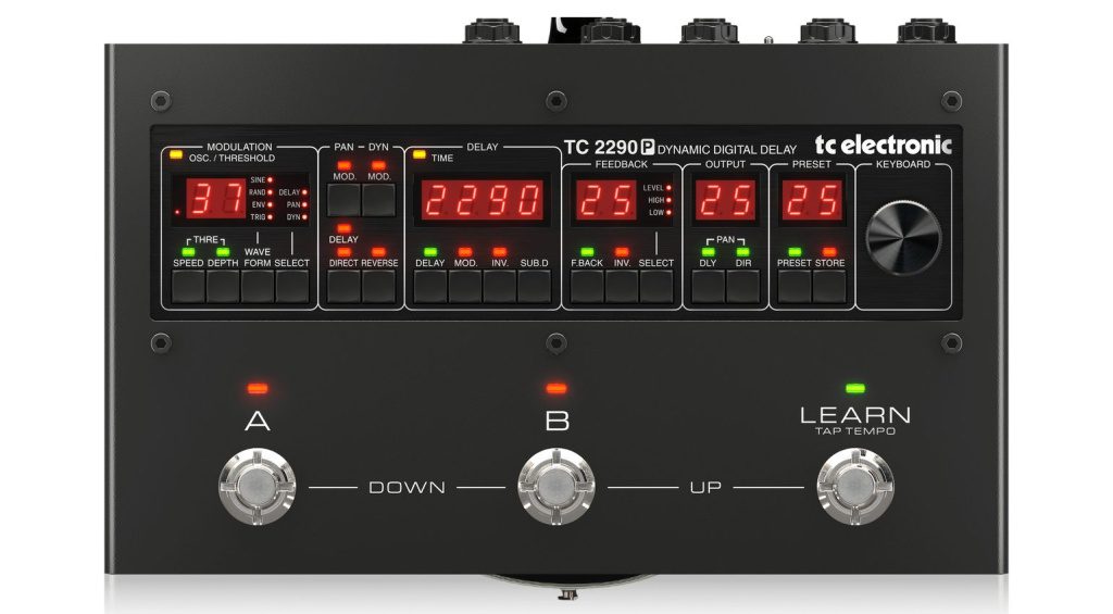 Il prossimo è il TC Electronic 2290 P, che riproduce il tanto amato e ricercato effetto rack degli anni ’80 e offre fino a 9999 secondi di delay. Questa nuova versione in formato pedale cerca di inserire il delay digitale in un’unità dotata di 128 preset, 3 footswitch, un Tap Tempo ‘Learn’ dedicato con Sub-Divisions e Feedback Path FX Insert, rendendo più semplice l’integrazione in un moderno rig per chitarra.