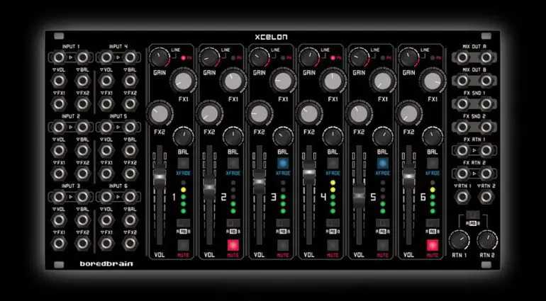 I mixer sembrano essere un po’ il tema della Knobcon di quest’anno. Abbiamo già visto il mixer analogico a controllo digitale di Noise Engineering e il Bluebox Eurorack Edition completamente digitale di 1010music. XCELON è l’analogico di Boredbrain, che di missaggio e routing audio se ne intende, visto che la maggior parte dei suoi moduli si occupa proprio di questo.