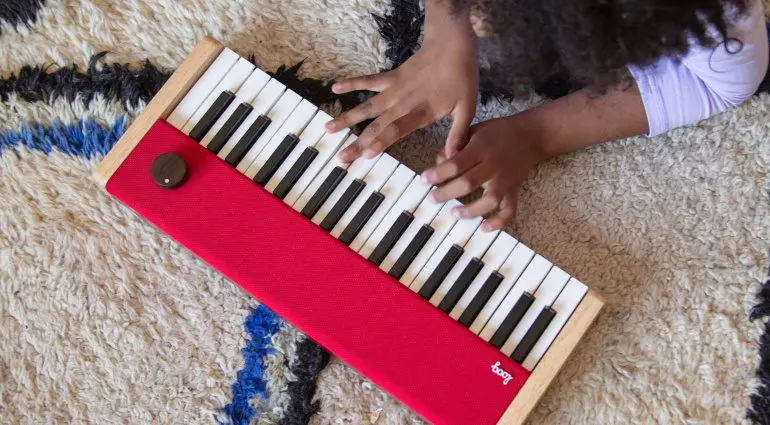 Grazie al Loog Piano, Loog introduce il suo approccio educativo, intuitivo e pensato per i bambini, nel mondo delle tastiere. Questo strumento è portatile, compatto e presenta un design accattivante.