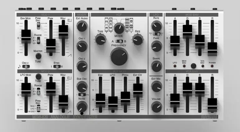 Oggi, MSW ha annunciato un nuovo synth basato proprio sull’810, il MSW-820, dotato di due oscillatori e di un filtro a 16 modalità particolarmente versatile.