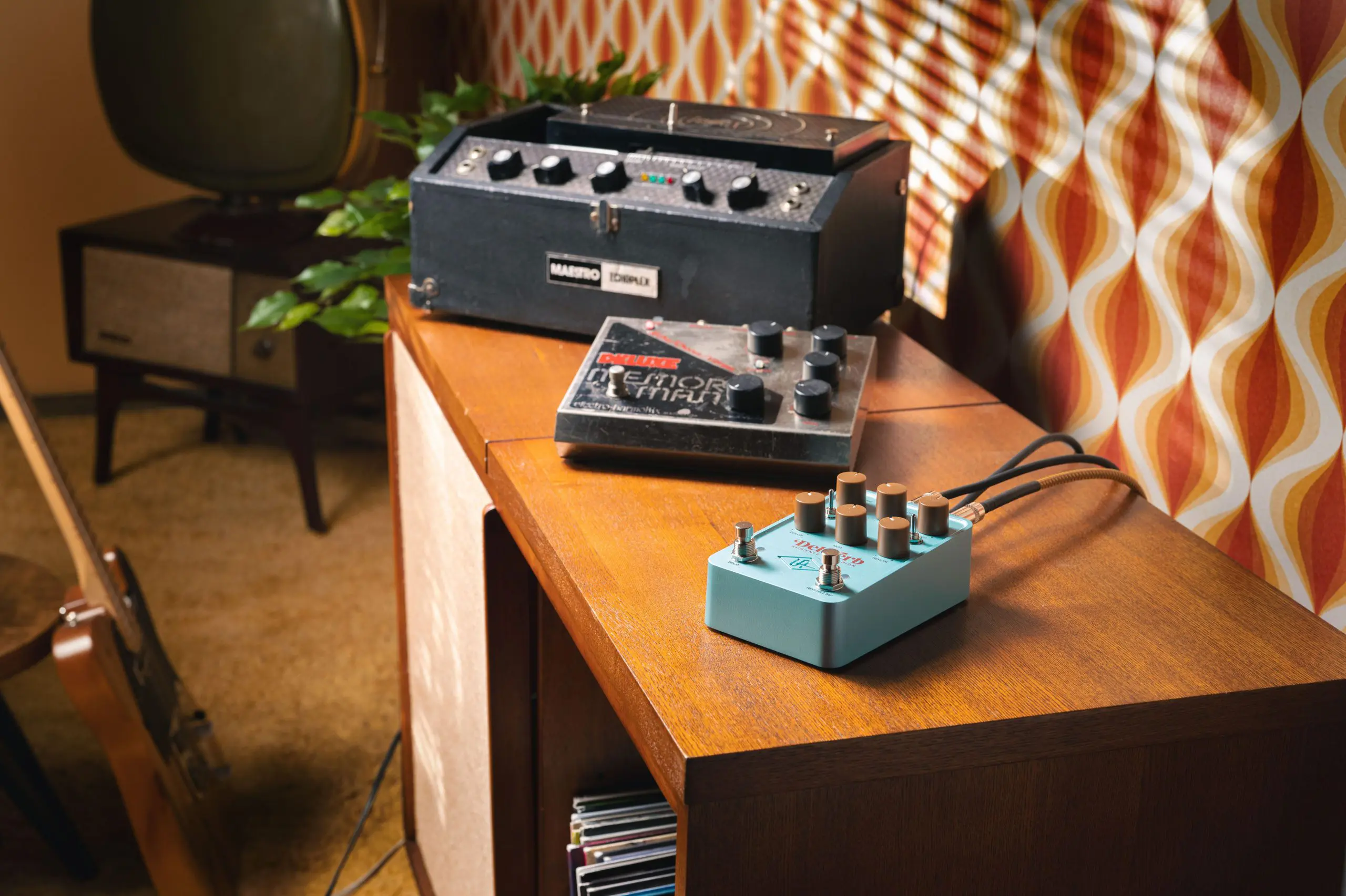 Il lato “delay” del pedale consente di ricreare il classico delay a nastro Echoplex EP-III, l’EH Deluxe Memory Man e il delay digitale di stile “precision” di UA. Per quanto riguarda i riverberi, sono disponibili le riproduzioni digitali di un riverbero EMT Plate, un riverbero digitale Lexicon e un riverbero a molla Fender a valvole.