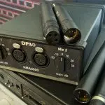 - Alimentatore DPA 130V con microfoni speciali a 130V (a destra) e convertitori a 48V (in alto)
