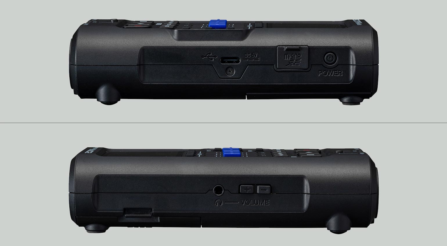 L’R4 è portatile e può essere alimentato con batterie AA o con un power bank USB, ed è dotato di un supporto per treppiede che consente di posizionarlo con l’angolazione giusta per la registrazione.