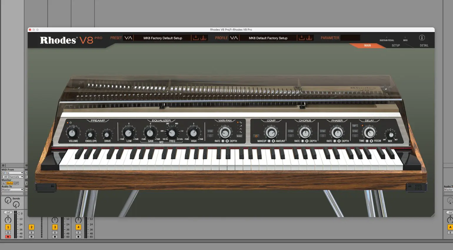 Nel corso degli anni sono state realizzate molte ricreazioni digitali del Fender Rhodes; alcune di esse suonavano piuttosto bene, mentre altre sono state decisamente inferiori rispetto a quanto ci si aspettava. Finalmente, però, abbiamo il primo (e finora unico) plugin ufficiale. Il Rhodes V8 è un plugin ampiamente multicampionato basato sul nuovo Rhodes Mk8. Esistono due versioni, Rhodes V8 e Rhodes V8 Pro, ed è proprio quest’ultima che recensirò oggi. La differenza principale è che il V8 Pro offre un livello maggiore di controllo e personalizzazione.