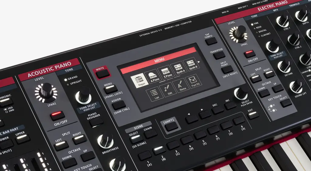 Inoltre, il Roland V-Stage offre un sintetizzatore dual-layer basato sul motore ZEN Core. Viene fornito con più di 400 suoni, ma è possibile espanderlo facilmente utilizzando i pacchetti di suoni SDZ e le Roland Model Expansion. Ciò significa che il V-Stage può emulare anche classici come Jupiter-8, Juno-106, SH-101, JX-8P e JD-800.