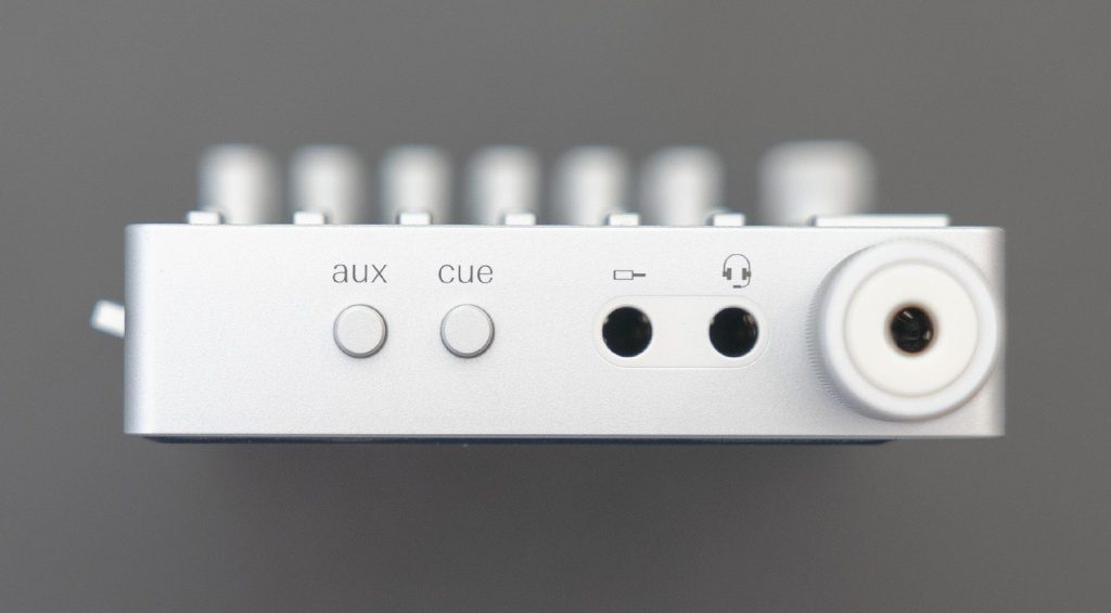 A destra si trovano le impostazioni delle funzioni del mixer. Due pulsanti aggiuntivi sulla parte anteriore attivano le impostazioni del TX-6 per le connessioni cue e aux. A causa delle dimensioni ridotte, non ci sono controlli separati per molte funzioni. Ciò significa che spesso è necessario scorrere i menu con il controller.