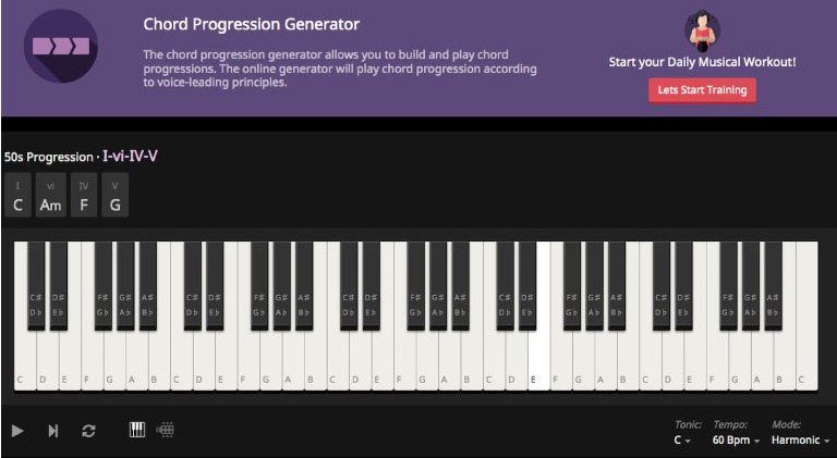 Con l’obiettivo di fornire ai musicisti strumenti che aumentino le loro capacità di composizione e la loro conoscenza della teoria musicale, ToneGym ha introdotto un generatore di progressioni di accordi online gratuito (ToneGym Chord Progression Generator). Tools come questi possono essere molto utili nel processo di composizione di una canzone, soprattutto quando sono così semplici e non richiedono l’installazione di alcun tipo di software. Il generatore di progressioni di accordi di ToneGym è particolarmente utile anche per chi vuole imparare a scrivere canzoni e a produrre musica. Risorse di questo tipo possono essere molto utili: fateci sapere quali sono le vostre preferite nei commenti qui sotto.