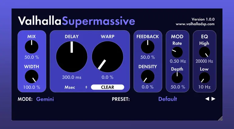 Valhalla DSP ha introdotto Supermassive alcuni anni fa, un plugin di effetto freeware che, come il nome suggerisce, offre un’esperienza di riverbero e delay “super e massiccia”. Il creatore di questo strumento è Valhalla DSP, un nome ben noto negli studi di registrazione globali, apprezzato per i suoi plug-in di alta qualità che non pesano sul budget.