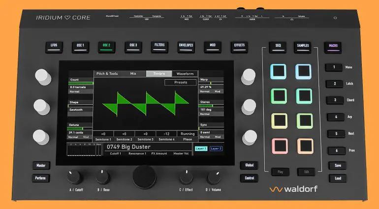 Waldorf ha raccolto quasi tutta la potenza di Iridium in una versione più piccola e intuitiva. Iridium Core abbandona i controlli a manopola e si concentra sui parametri fondamentali e sulla navigazione su display di grandi dimensioni.