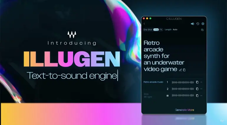 Waves ILLUGEN è un generatore di campioni basato su prompt che utilizza l’intelligenza artificiale per creare one shot, loop e SFX originali. Come spiega il sito web, “descrivete una scena, uno stato d’animo o un’idea folle, ILLUGEN la convertirà in suono”.